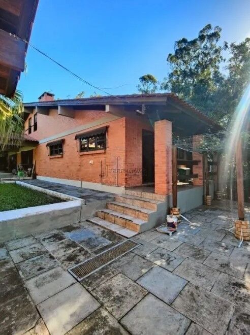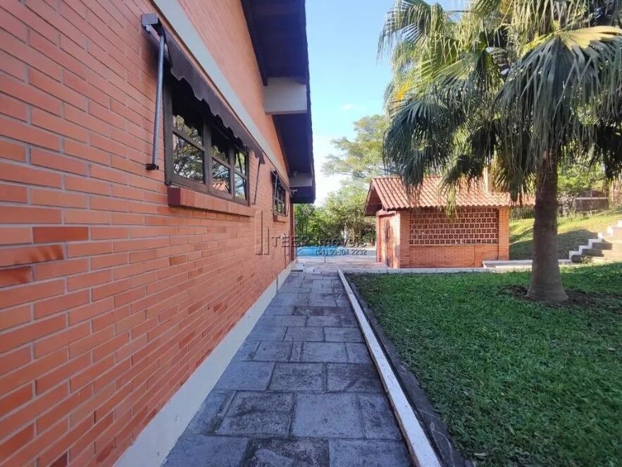 LINDA CASA com 1 dormitório, aproximadamente 1250m² privativos, banheiro, living amplo com lareira, mezanino, cozinha com churrasqueira e área de serviço. Quiosque junto a piscina com churrasqueira, amplo pátio com campo de futebol e playground.