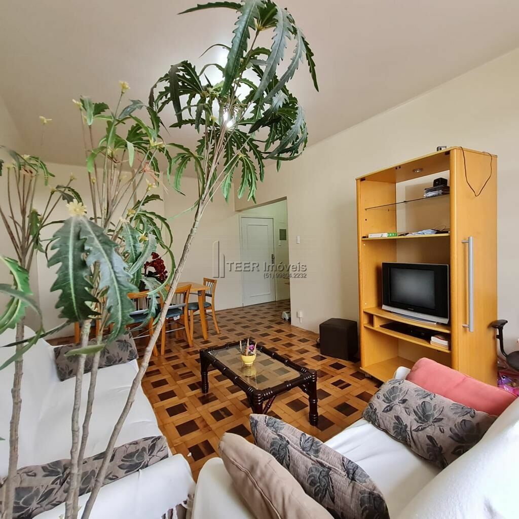 Amplo apartamento de 3 dormitórios, DESOCUPADO, com a área privativa de 93 m², living pra dois ambientes com hall de entrada, com dependência de empregada e banheiro auxiliar, cozinha e área de serviços.