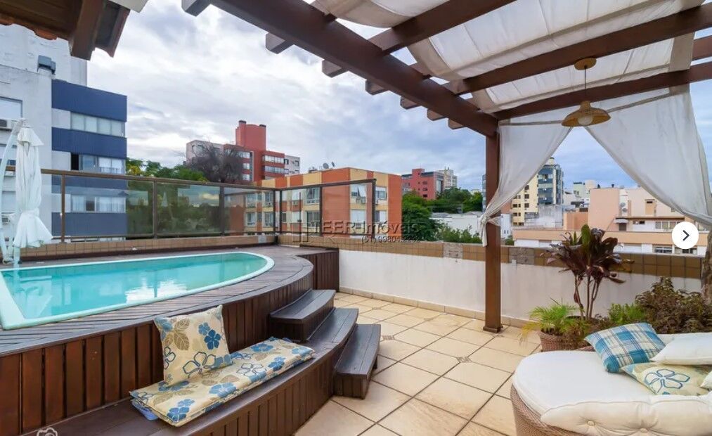 Destaques do Imóvel: Andar Inferior: 2 dormitórios mobiliados (1 com closet), banheiro social moderno, amplo living podendo integrar à sacada, cozinha planejada e área de serviço com despensa. Andar Superior: Terraço com orientação norte, piscina privativa, espaço gourmet com churrasqueira e lareira junto ao Home Theater, banheiro completo e ambiente versátil (ideal para um terceiro quarto, escritório ou sala íntima).
